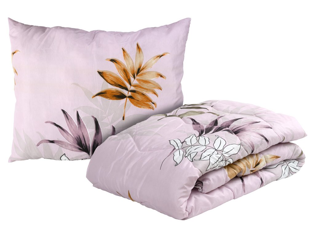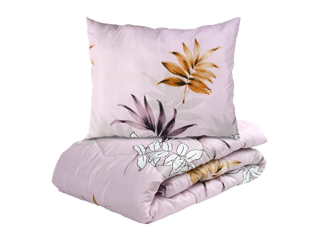 Egész éves steppelt takaró 140x200 cm párnával LEVELEK rózsaszín 70x90 cm