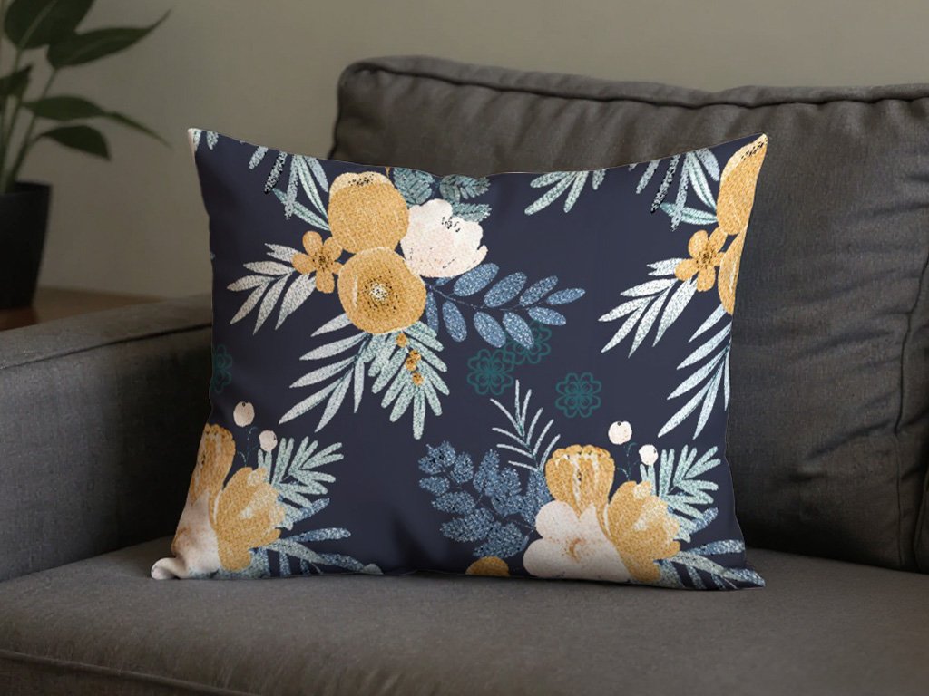 2 db mikroszálas díszpárnahuzat-szett FLOWERISH 50x70 cm, sötétkék