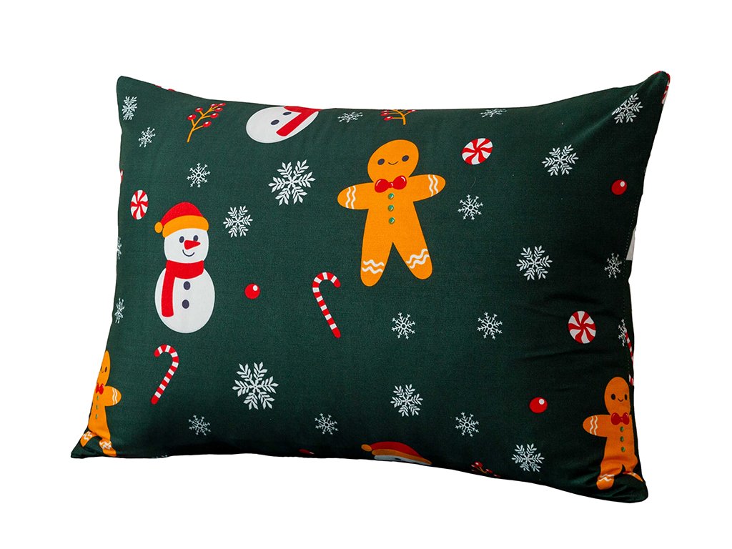 SNOWMAN AND GINGERBREAD 50x70 cm zöld mikroszálas párnahuzat