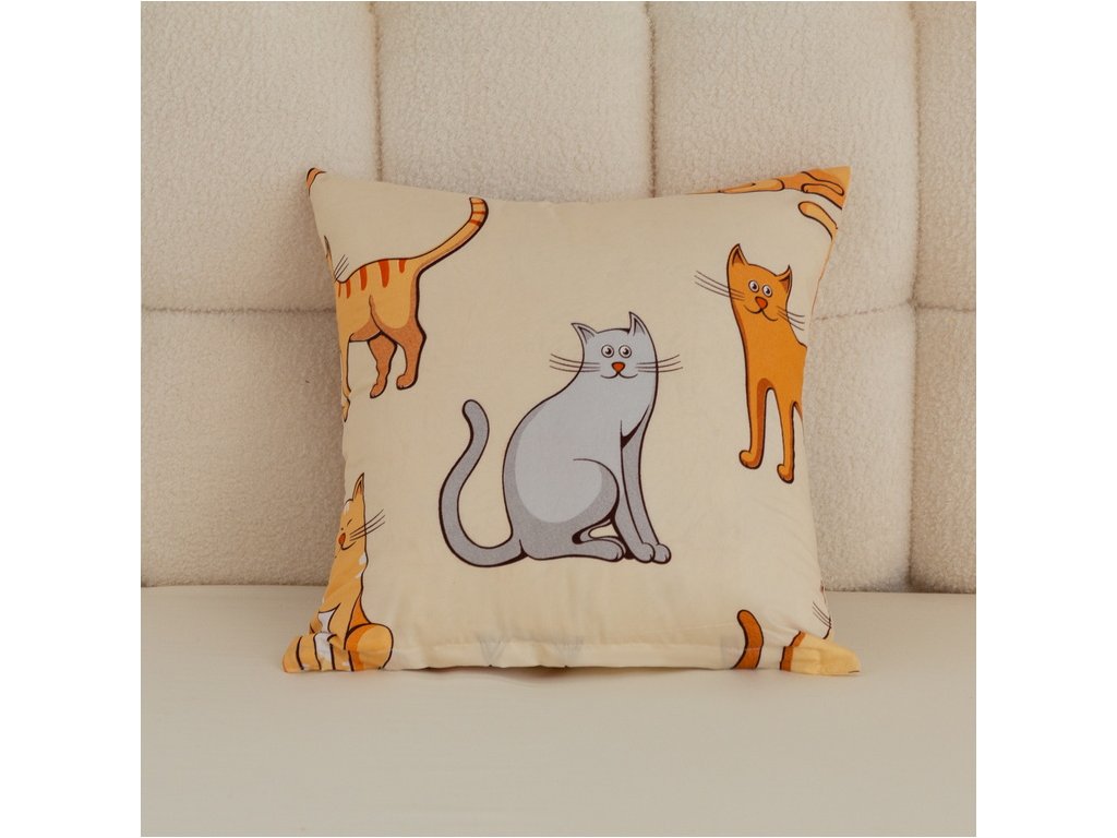 Mikroszálas párnahuzat COLORED CATS 45x45 cm, krém színű