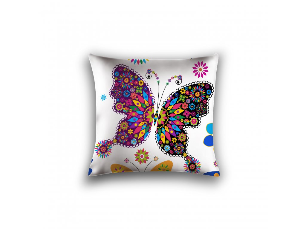 SZÍNES PILLANGÓ dekoratív párnahuzat 40x50 cm, fehér