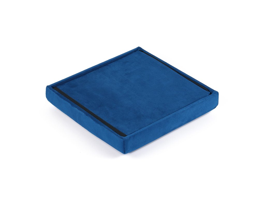A nagyon stabil ülőke bársonyos anyaggal van bevonva kék színben. Az ülőfelületet kiváló minőségű hab tölti ki, amely kényelmes ülést biztosít. Az összecsukható ülőke CUBEXO VELVET M funkcionális kiegészítője lesz minden otthonnak, és utazás során is használható.