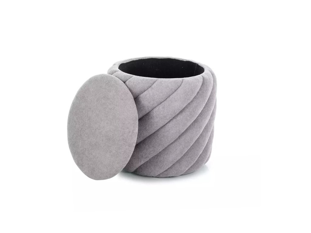 Ez az elegáns puff ötvözi a modern dizájnt a praktikummal. A tárolóhely révén könnyedén elrejtheti a plédeket, magazinokat vagy más apróbb dolgokat, ezzel is rendet tartva a szobában. Finom szürke színe és spirál varrása luxus megjelenést kölcsönöz, ami nagyszerűen illik a nappaliba, hálószobába vagy előszobába. Könnyen mozgatható és ugyanakkor stabil, nélkülözhetetlen segítséggé válik a mindennapi kényelem érdekében.