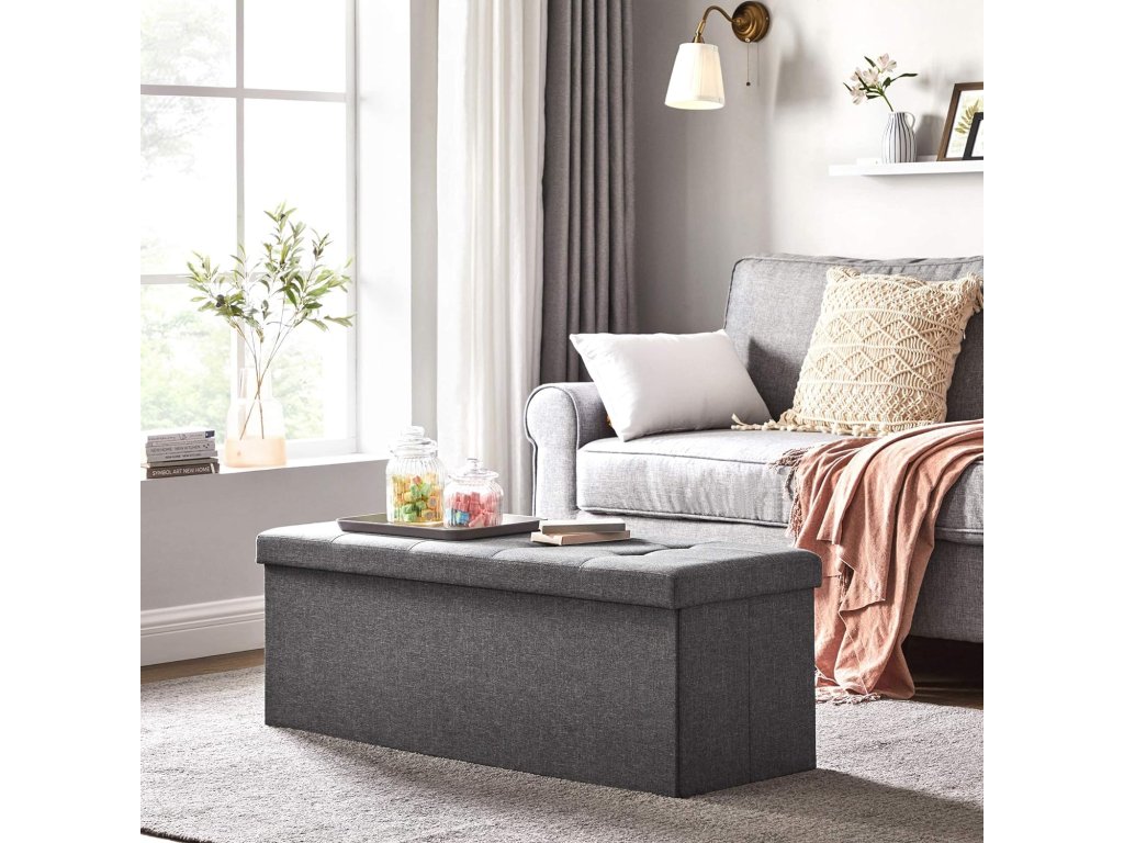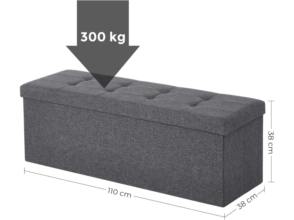 Ez a stílusos pad nagyvonalú tárolóhellyel kiváló kiegészítője bármelyik helyiségnek. Az akár 300 kg teherbírásnak köszönhetően nemcsak stabil ülőfelületet kínál, hanem tárolási lehetőséget is biztosít takarók, párnák vagy szezonális kiegészítők számára. Praktikus kialakítása lehetővé teszi a könnyű összeszerelést, amit különösen a szállítás vagy tárolás során fog értékelni. Finom, sötétszürke kárpit anyag adja meg otthonának modern és elegáns megjelenését, miközben a hab töltet kényelmet nyújt. Ez a pad megtalálja a helyét a nappaliban, a hálószobában vagy az előszobában is, ahol segít rendet tartani és egyúttal stílusos elemmé válik.