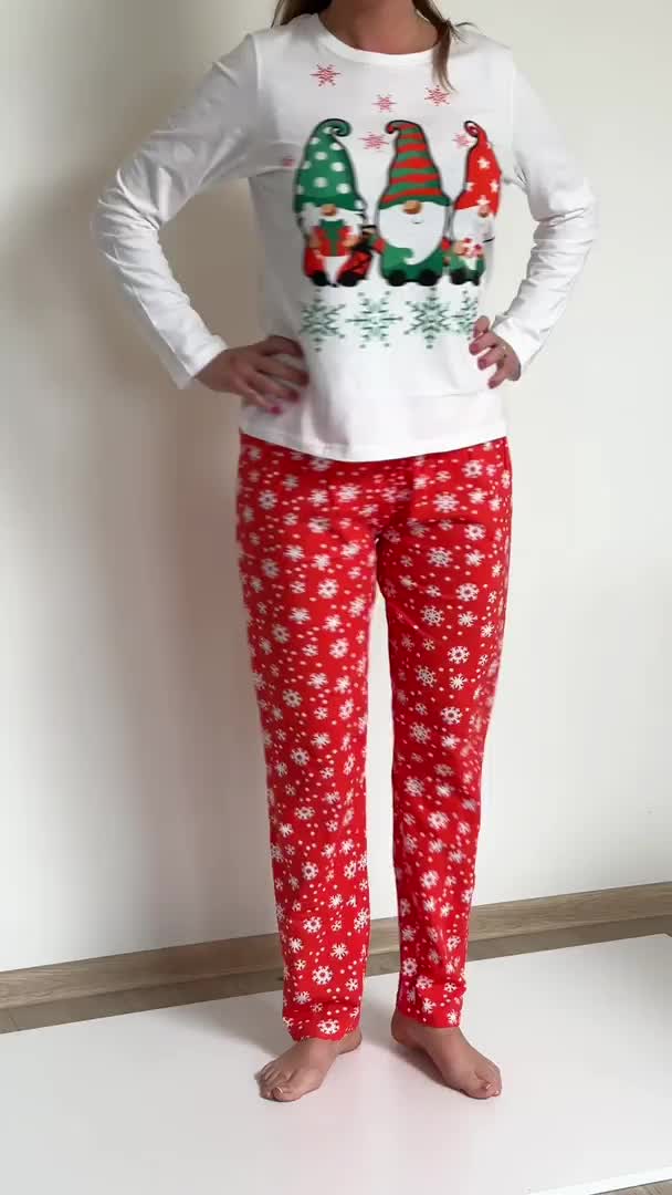 CHRISTMAS karácsonyi női pizsama fehér-piros - többféle méretben