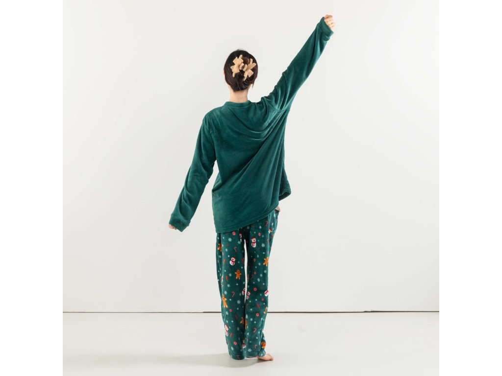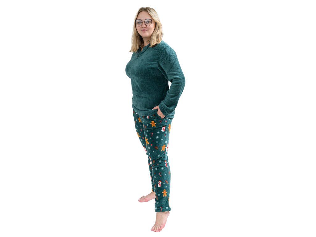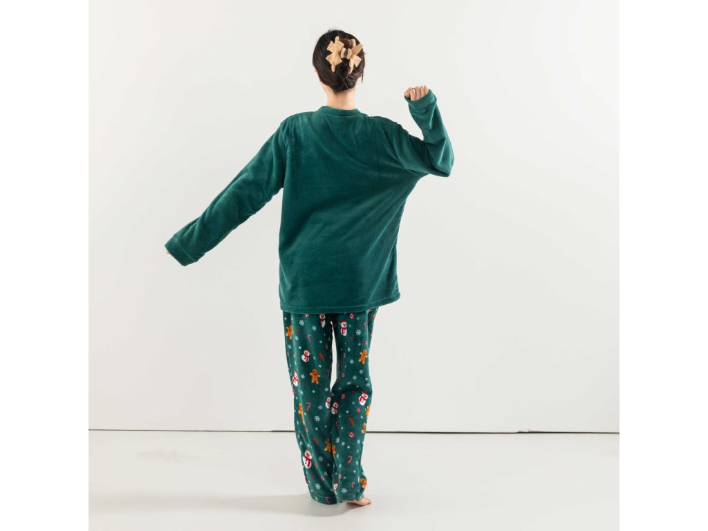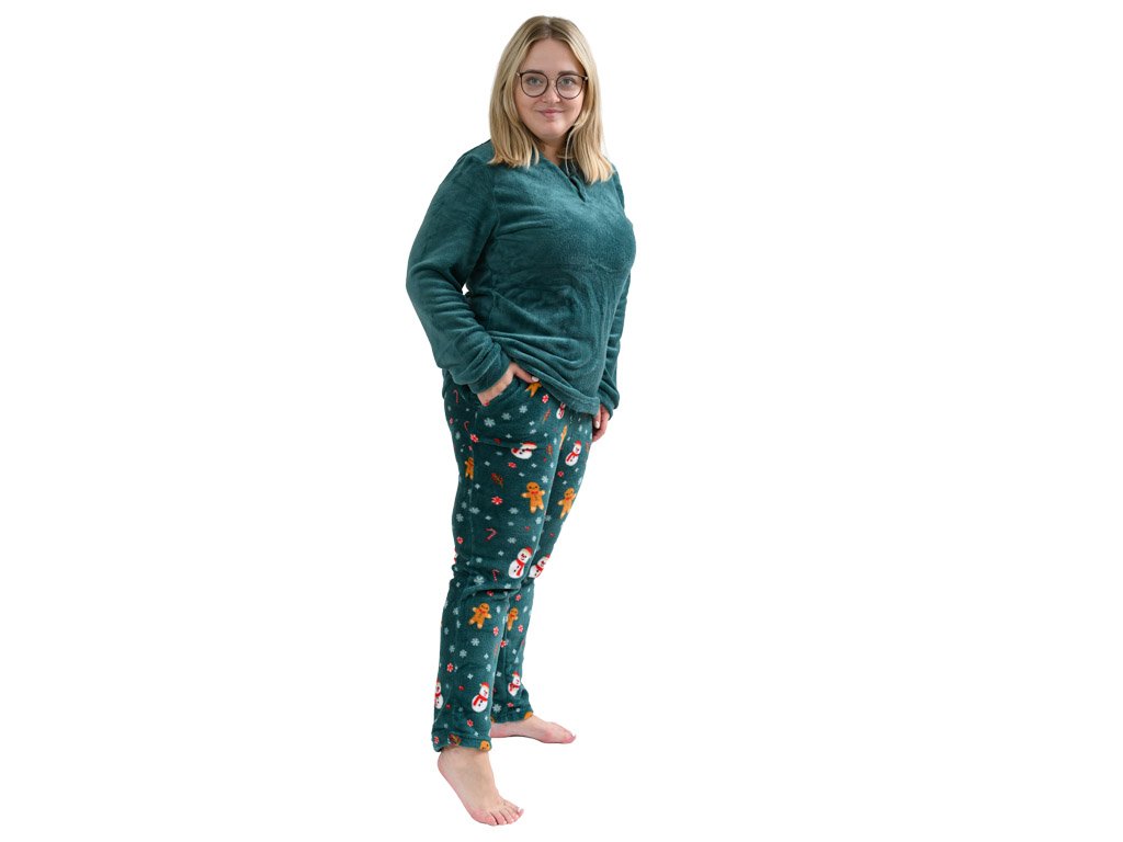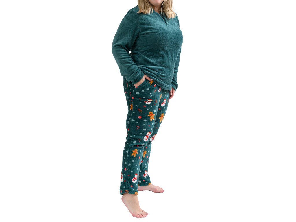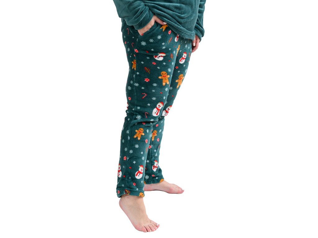 SNOWMAN AND GINGERBREAD zöld mikroplüss pizsama - különböző méretben