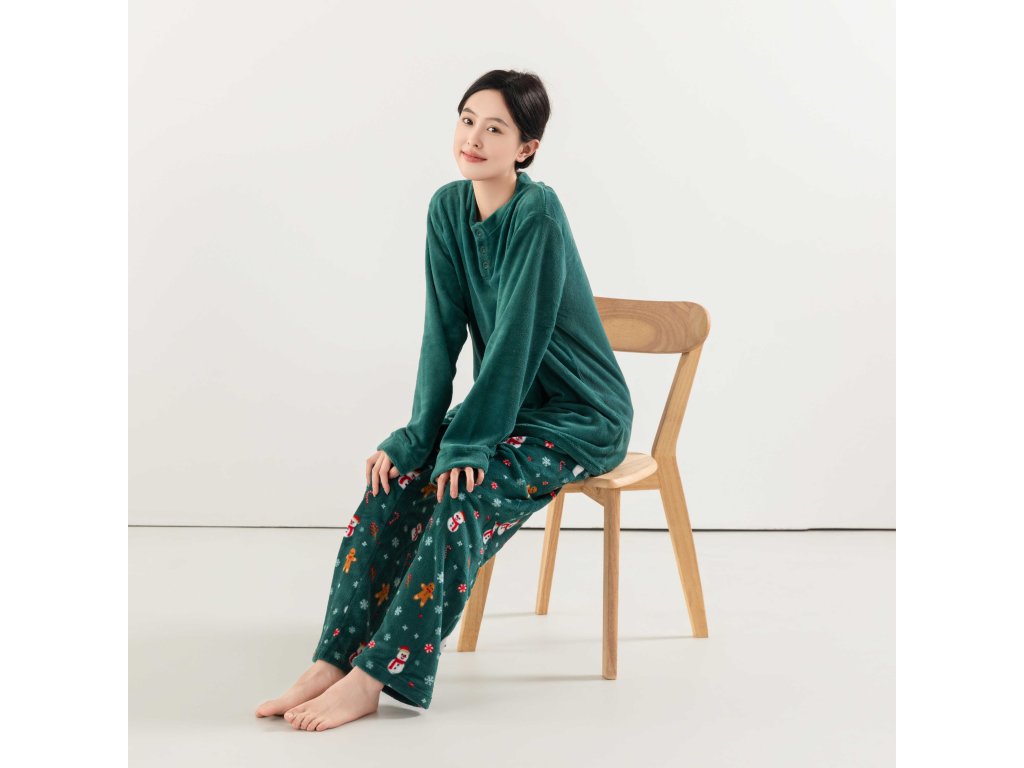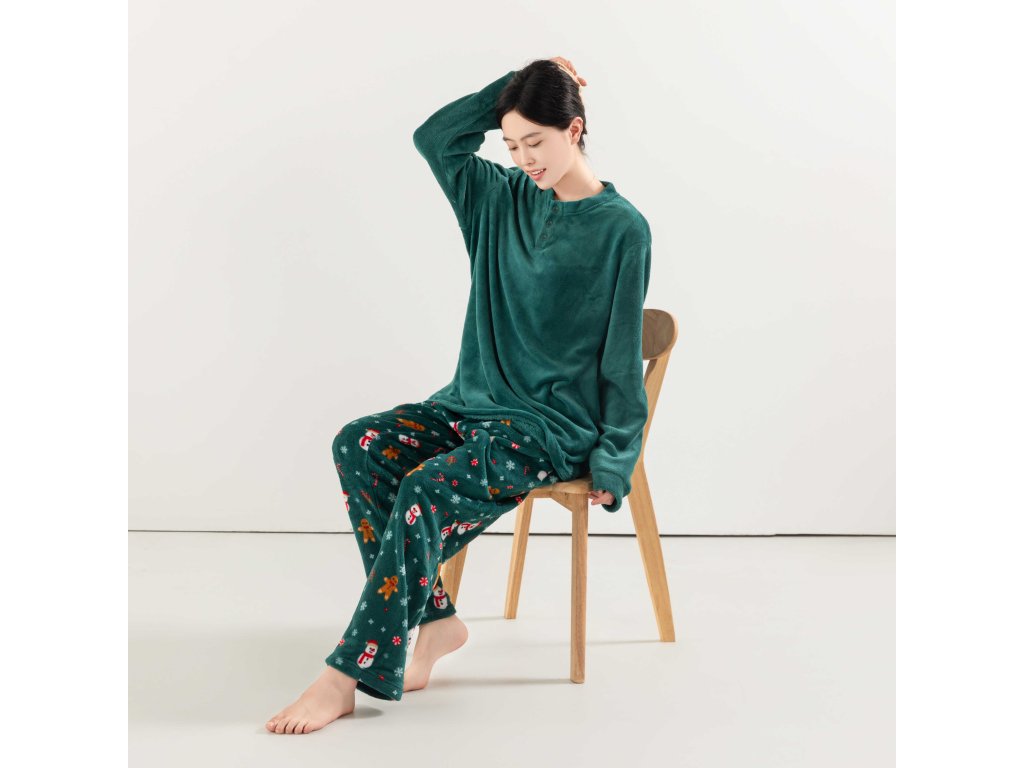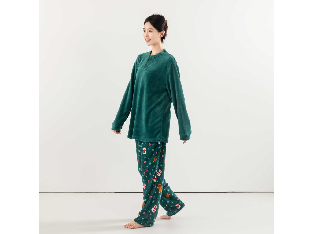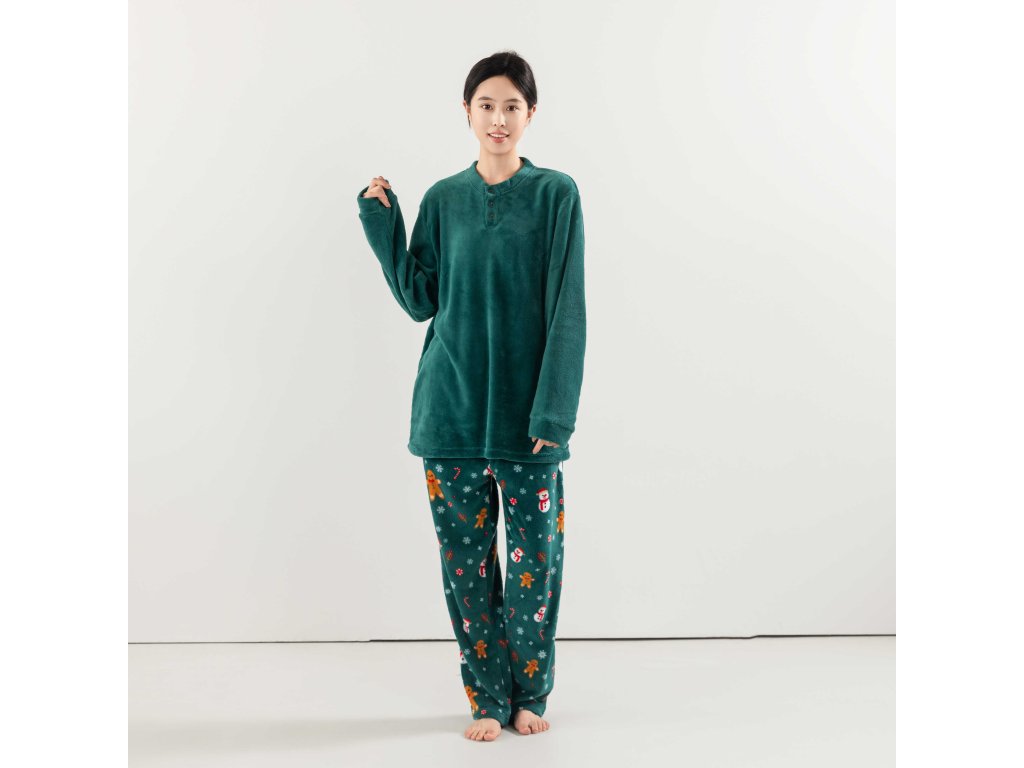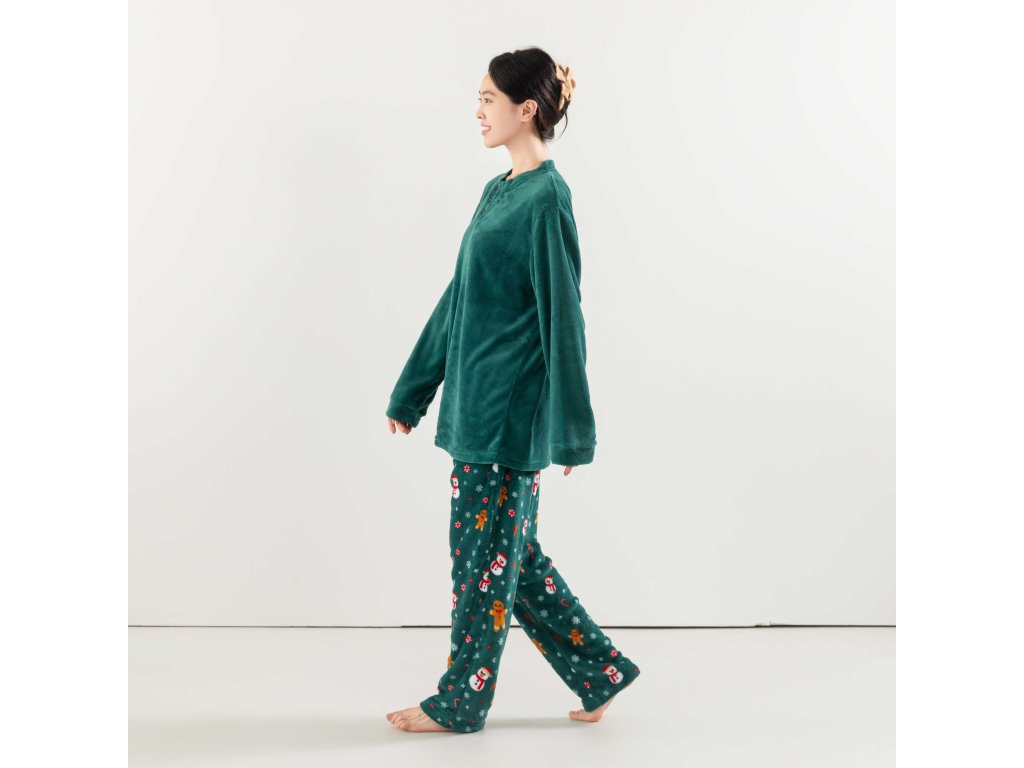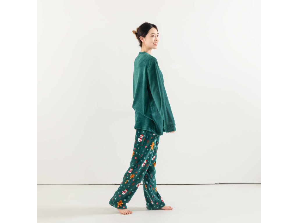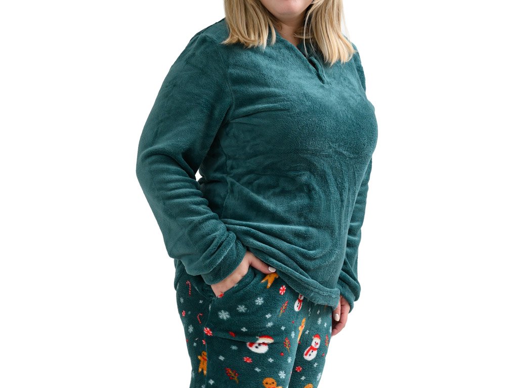 SNOWMAN AND GINGERBREAD zöld mikroplüss pizsama - különböző méretben