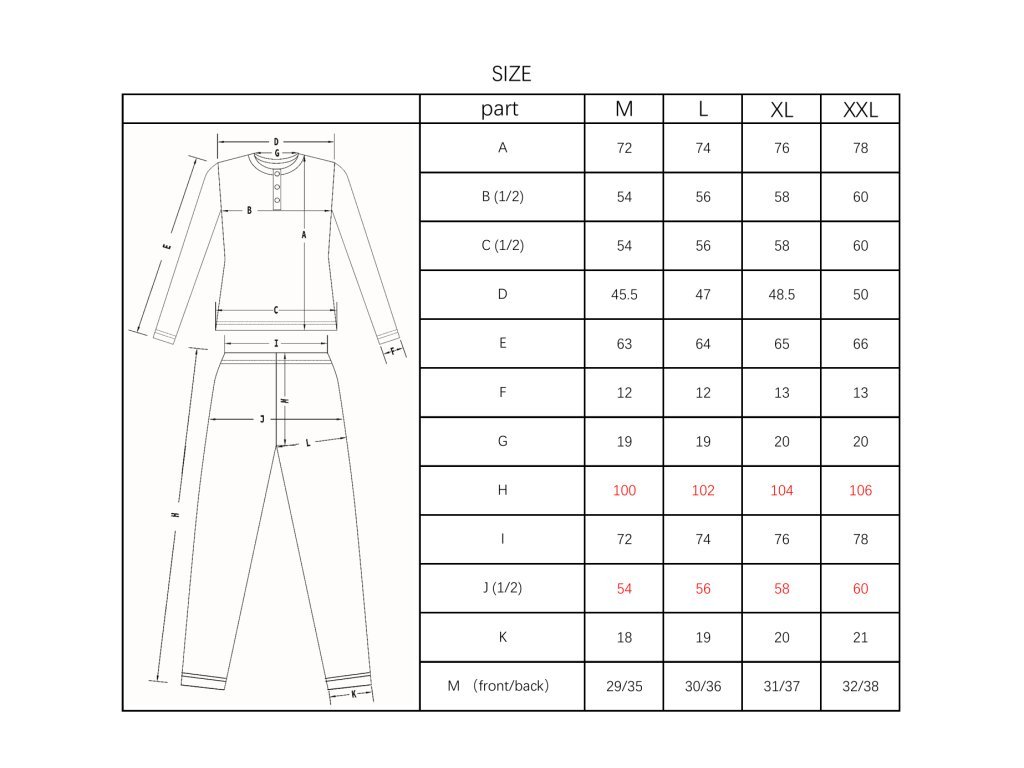 - A pizsama mérete a termék mérettáblázata szerint, a kényelmes alvás érdekében válasszon egy mérettel nagyobbat