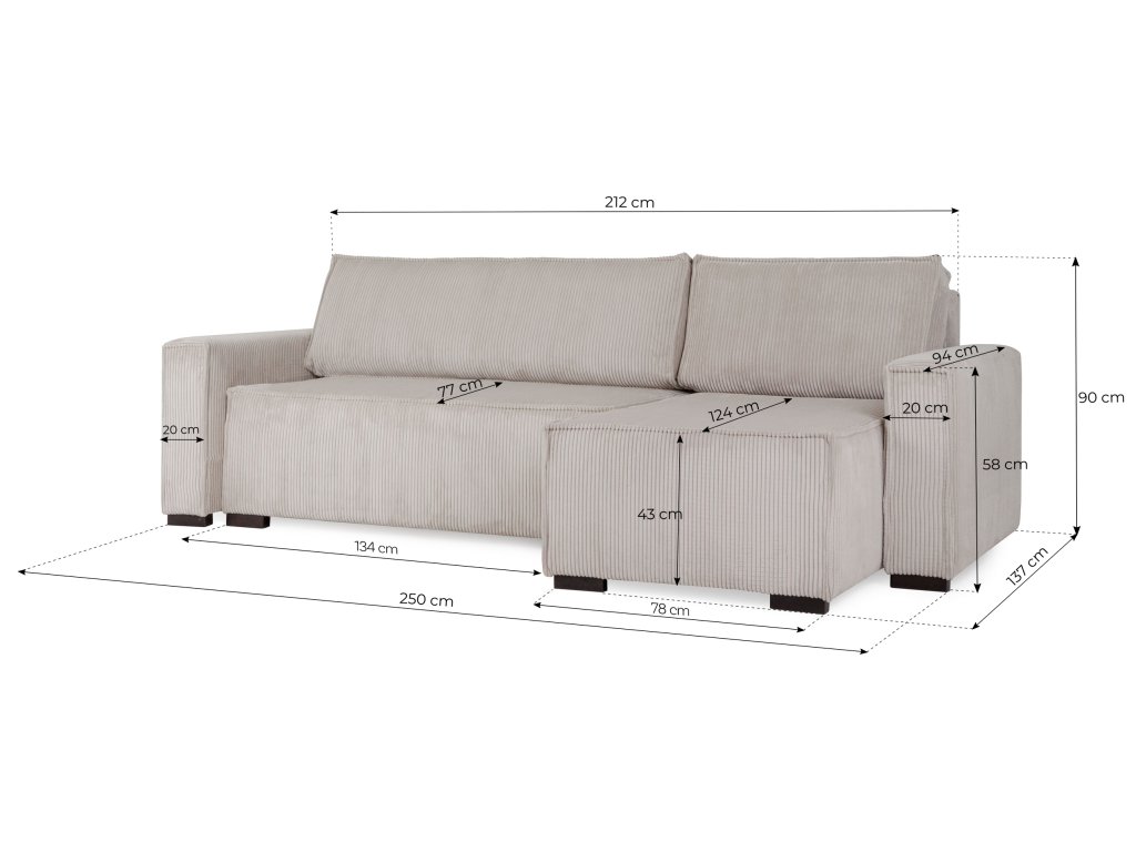 | Kanapé fekvőfelület: | 250 x 137 cm |