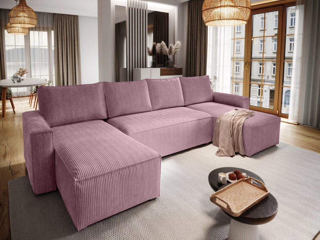 U alakú ülőgarnitúra SMART COSARO 295x140 cm, világos lila