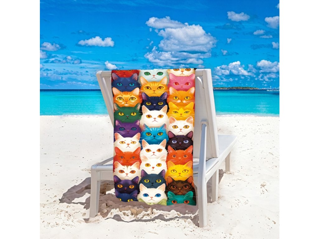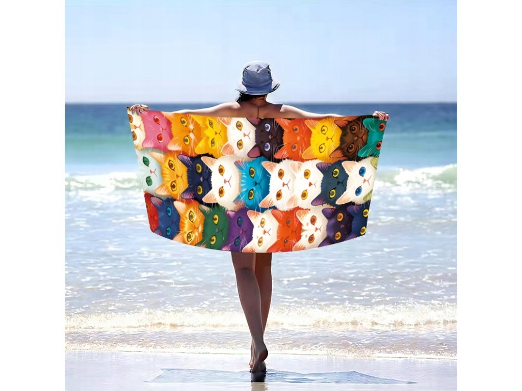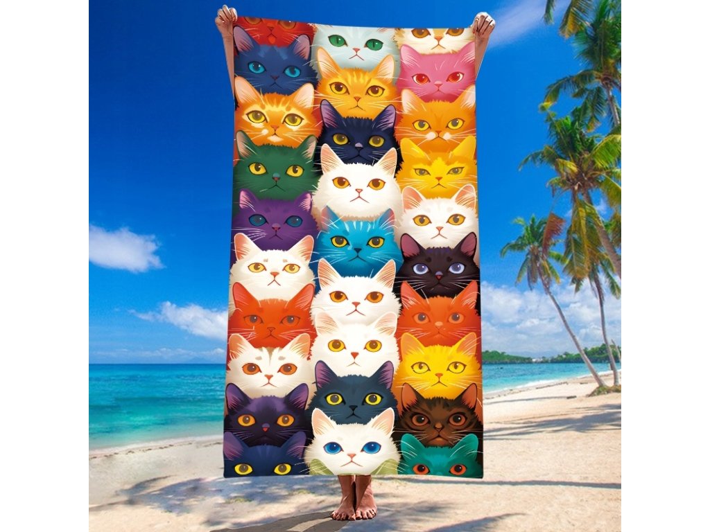 Gyorsan száradó strandtörölköző MEOW 100x180 cm színes, 100% mikroszálas
