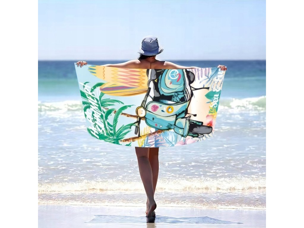 Gyorsan száradó strandtörölköző SEA AND FUN 100x180 cm színes, 100% mikroszálas