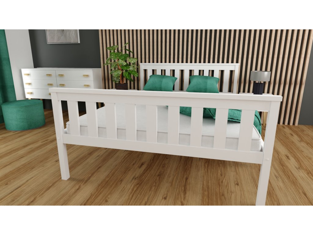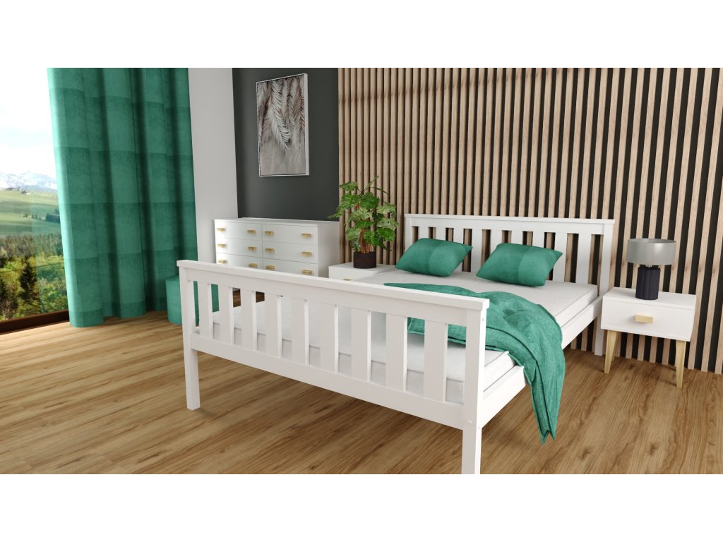Ágy KALEA fehér kialakítása a funkcionalitás és az időtlen elegancia kombinációját kínálja. Ideális választás a hálószobába, ahol értékelni fogja nemcsak az ágy szilárdságát és tartósságát, hanem minimalista dizájnját is, amely könnyen összhangba hozható a belső tér további elemeivel. A fehér lakk friss és légies hatást kelt, míg a magasabb fejtámla kényelmet nyújt olvasás vagy pihenés közben. Méreteinek köszönhetően az ágy párok számára is alkalmas, vagy azoknak, akik igazán kényelmes alvástérre vágynak.