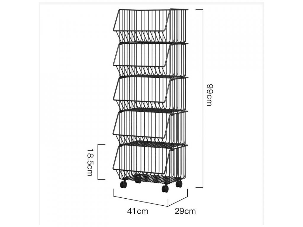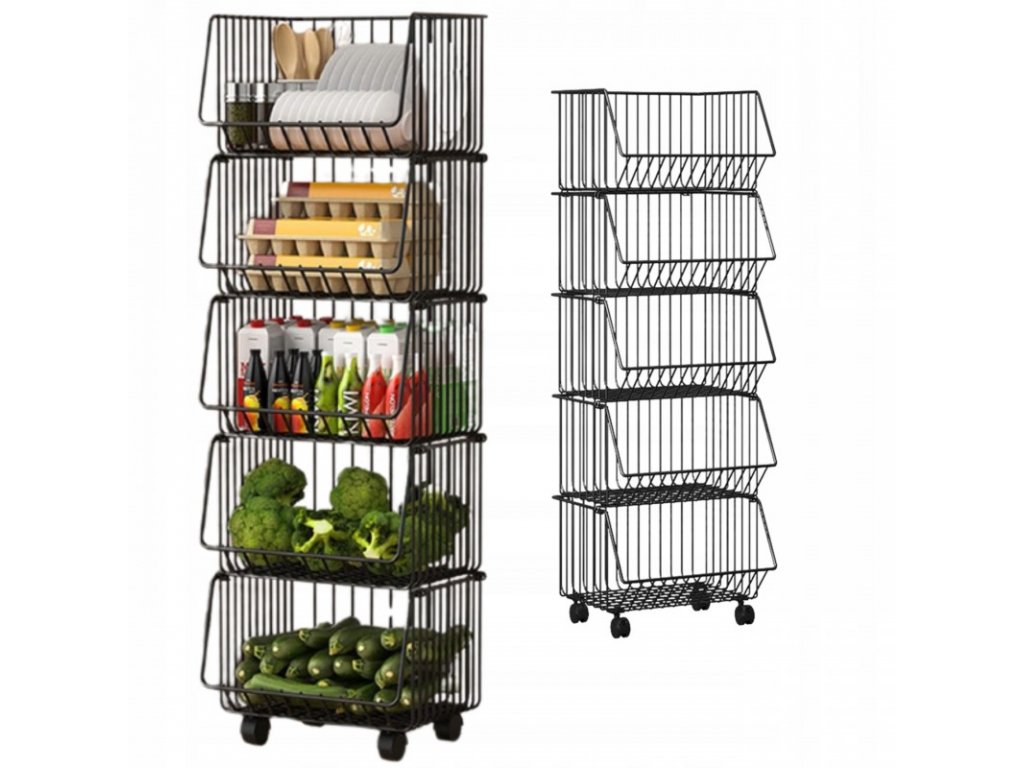 A Fém polc kerekeken QUANTA, 5 kosár, fekete praktikus segítő minden otthonban. Sokoldalú felhasználása a konyhában, kamrában, fürdőszobában, műhelyben vagy garázsban lehetővé teszi, hogy könnyedén rendszerezze és tárolja az összes szükséges dolgot. A kerekeknek köszönhetően könnyen áthelyezhető, így bármikor és bárhová átteheti az igényei szerint. A robusztus kialakítás biztosítja a stabilitást és a hosszú élettartamot, így a nehezebb tárgyak tárolásakor is megbízhat benne. A Quanta polccal mindig minden kéznél van és rendezetten.