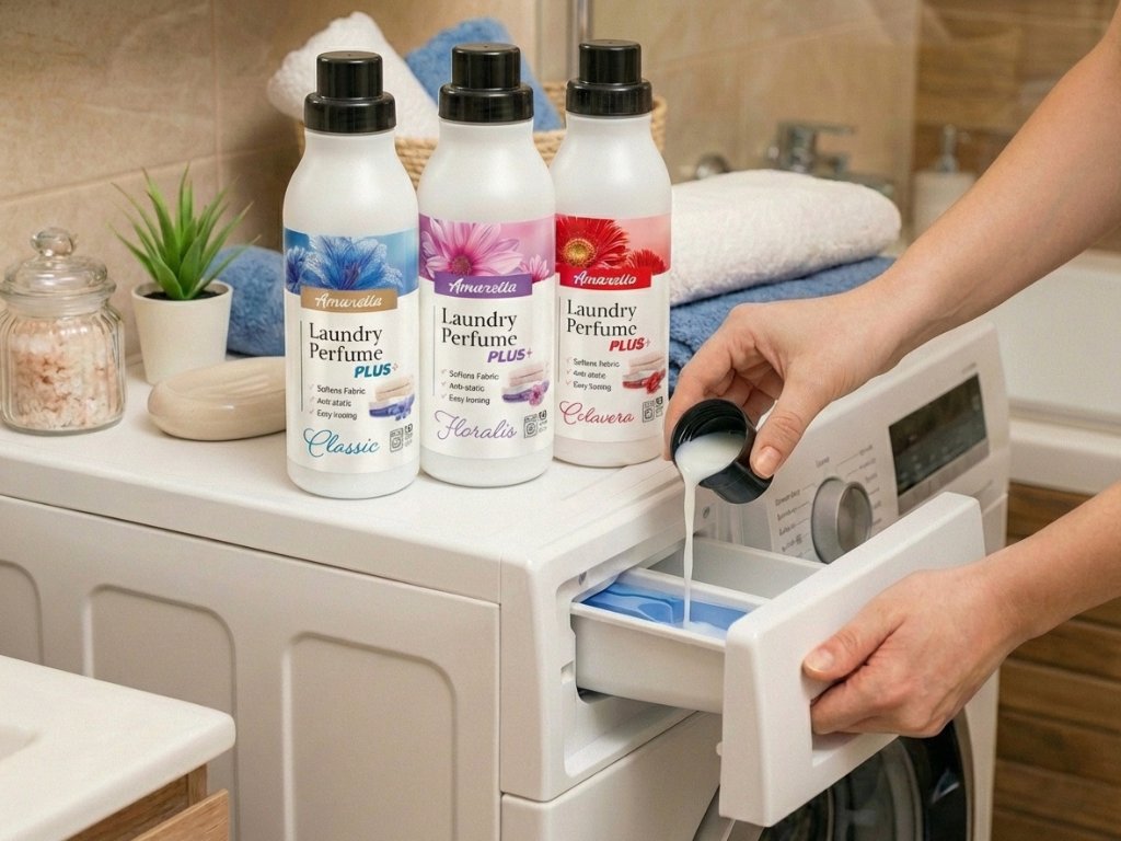 AMARELLA mosóparfümök modern megoldást kínálnak a mindennapi mosási feladatokhoz, amelyek intenzív illatot és valódi gyakorlati előnyöket egyesítenek. Fejlett összetételüknek köszönhetően hosszú távú frissességet, puhaságot és kényelmet biztosítanak a textíliáknak viseléskor. Minden parfüm adag átjárja az anyagot, így a ruhák, törölközők és ágyneműk száradás után és viselés közben is friss illatúak maradnak. Ezenkívül antiszatikus hatásúak, megkönnyítik a vasalást és csökkentik a gyűrődést. Egy csomag akár 50 mosásra is elegendő, így az Amarella megbízható és luxus kiegészítővé válik könnyen illatozó és rendezett ruhákért.