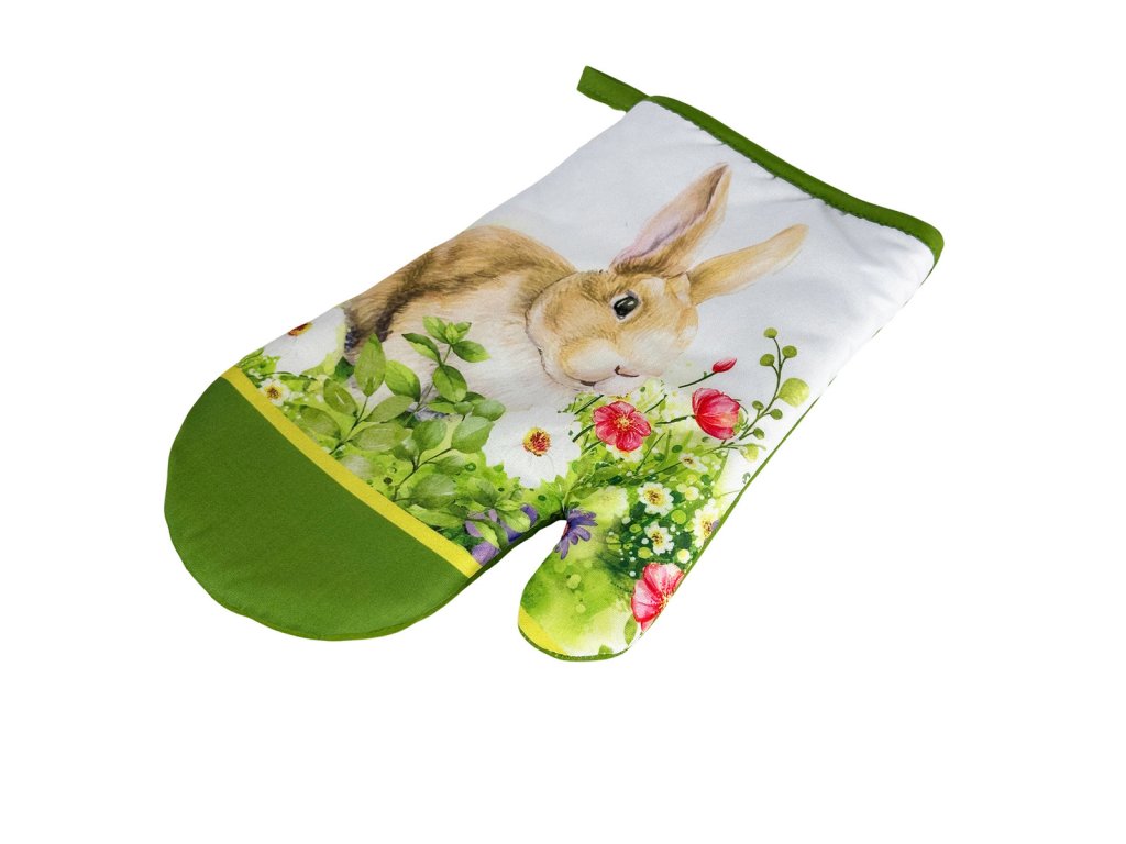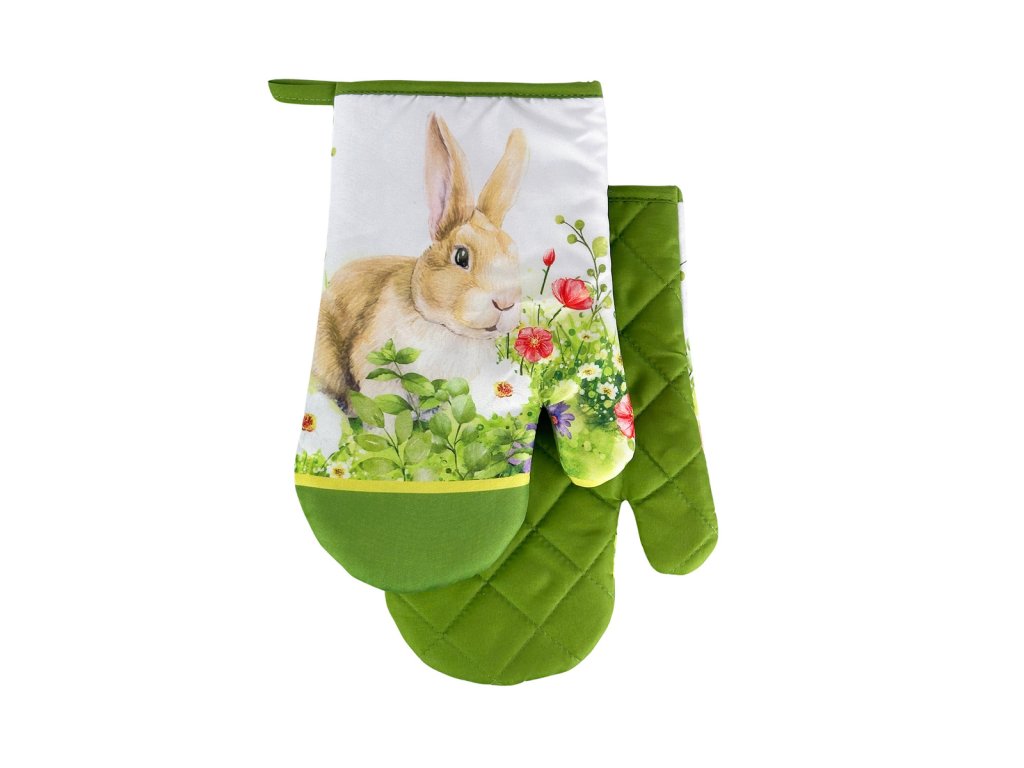 2 darabos húsvéti nyuszi konyhai edényfogó készlet mágnessel, fehér-zöld
