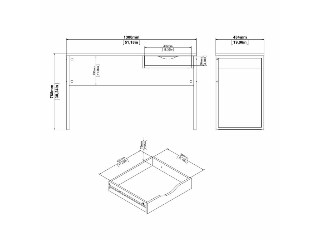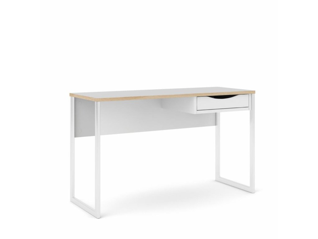Fehér EFREM PLUS 512 íróasztal 1 fiókkal és tölgy mintázatú lappal