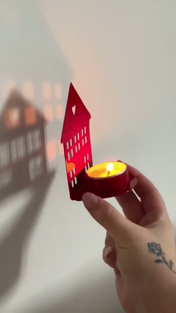 Tealight Mécsestartó HÁZ HOMLOKZAT, piros
