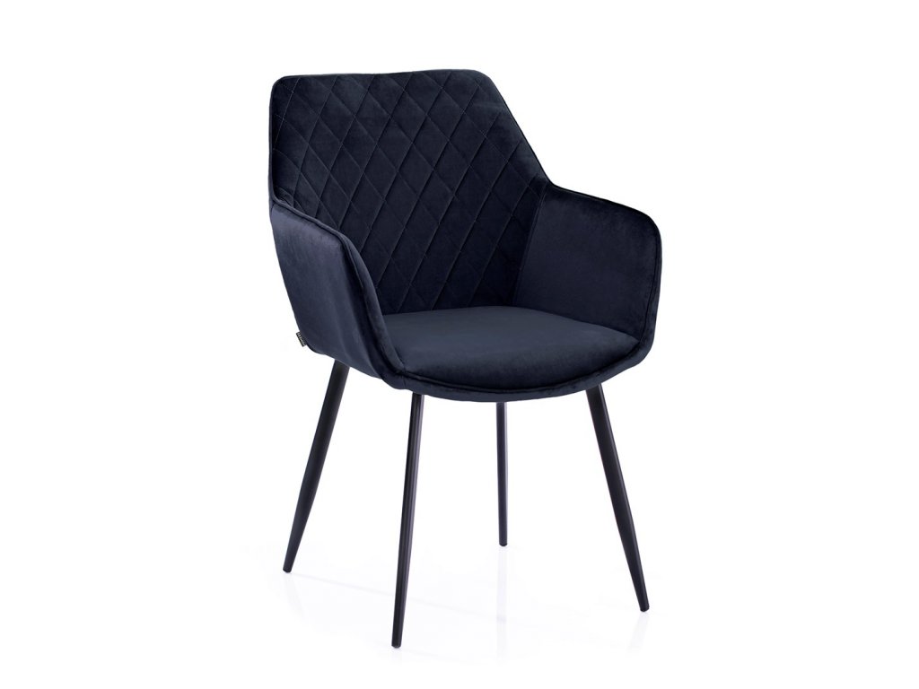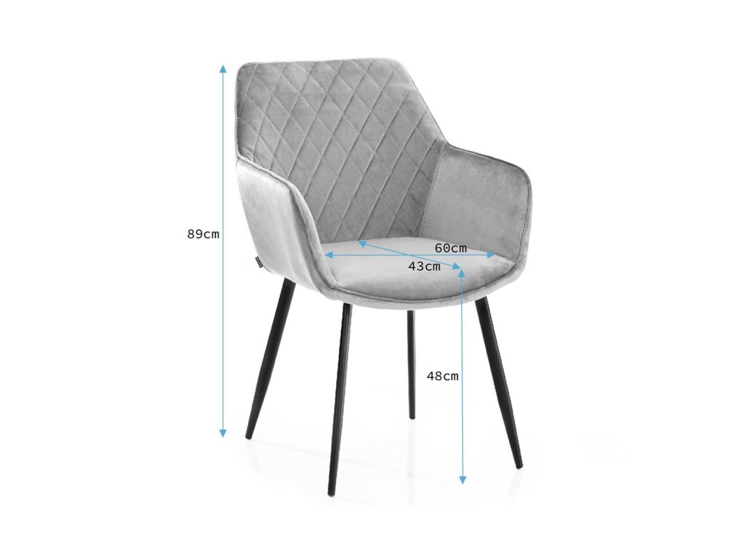 A kényelmes ülés mellett ez az étkezőszék kiváló minőségű bársony szövet huzattal és precíz kidolgozással büszkélkedhet. Kellemes bónusz az elegáns, fekete fém lábak, amelyek még jobban fokozzák a szilárdság összbenyomását.