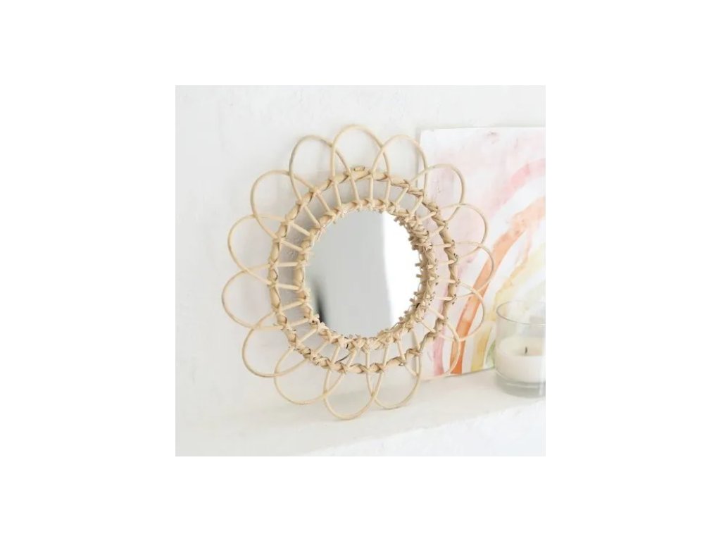 SUN PETALS kör alakú tükör rattan kerettel, 50 cm