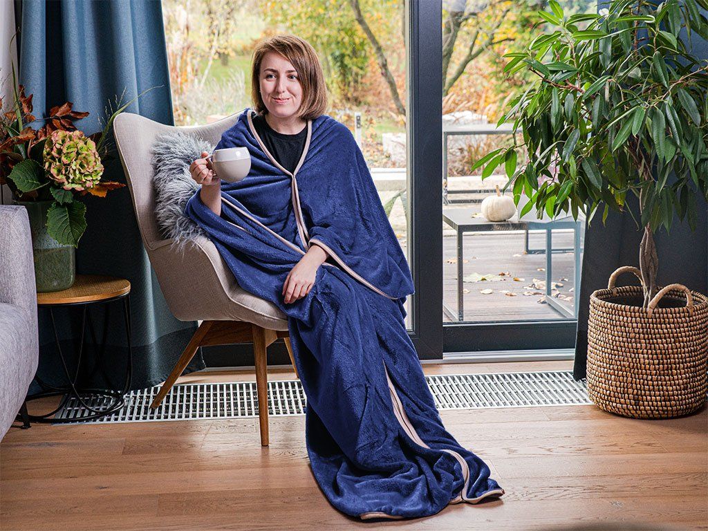 Sötétkék mikroplüss TV néző pléd 150x180 cm