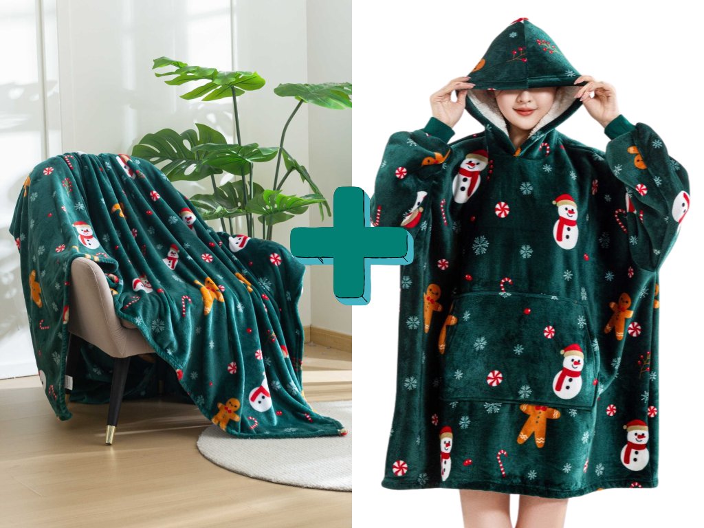 SNOWMAN AND GINGERBREAD ajándék szett a kanapéra, zöld