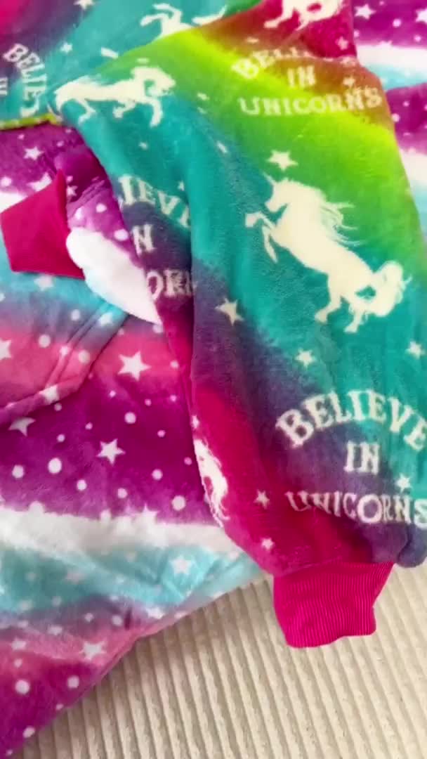 ALICORN színes báránybunda hatású kapucnis, ujjas pléd