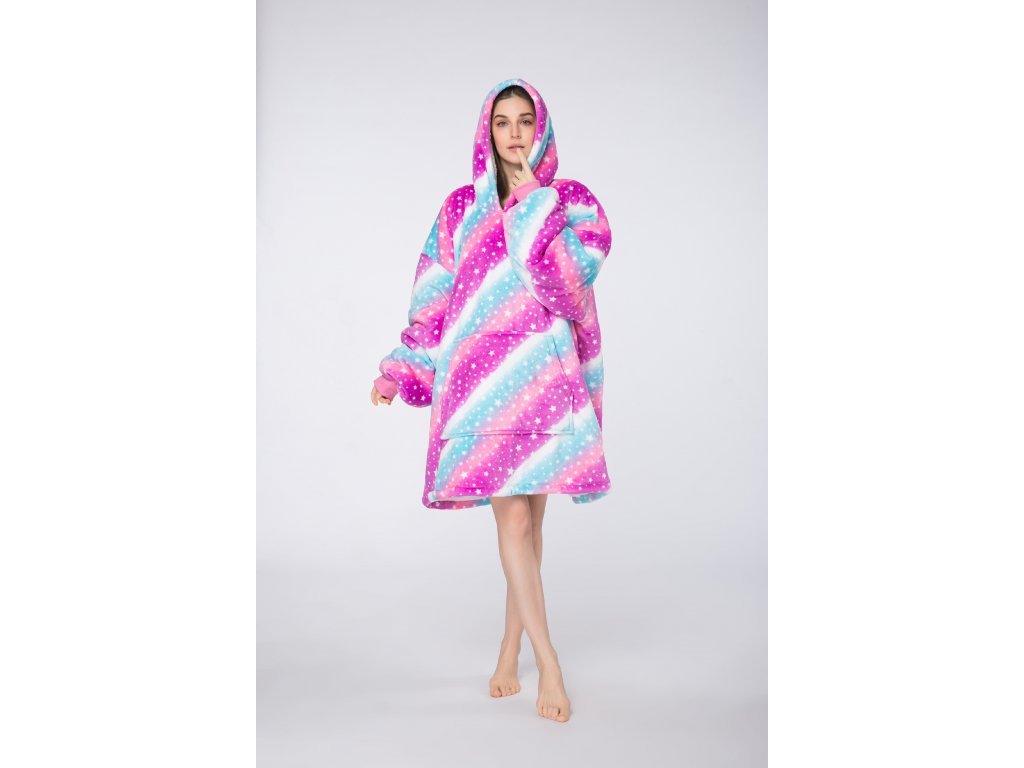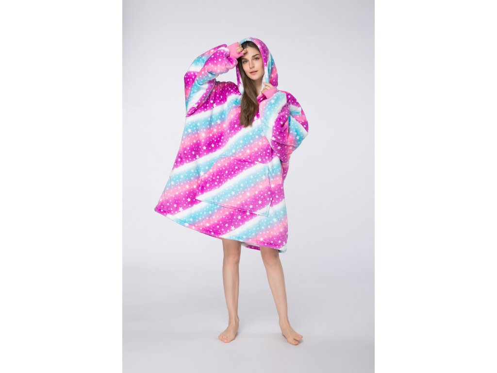 báránybunda hatású kapucnis, ujjas pléd AURORA színes