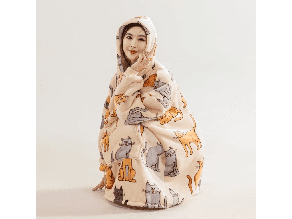COLORED CATS krém báránybunda hatású kapucnis, ujjas pléd