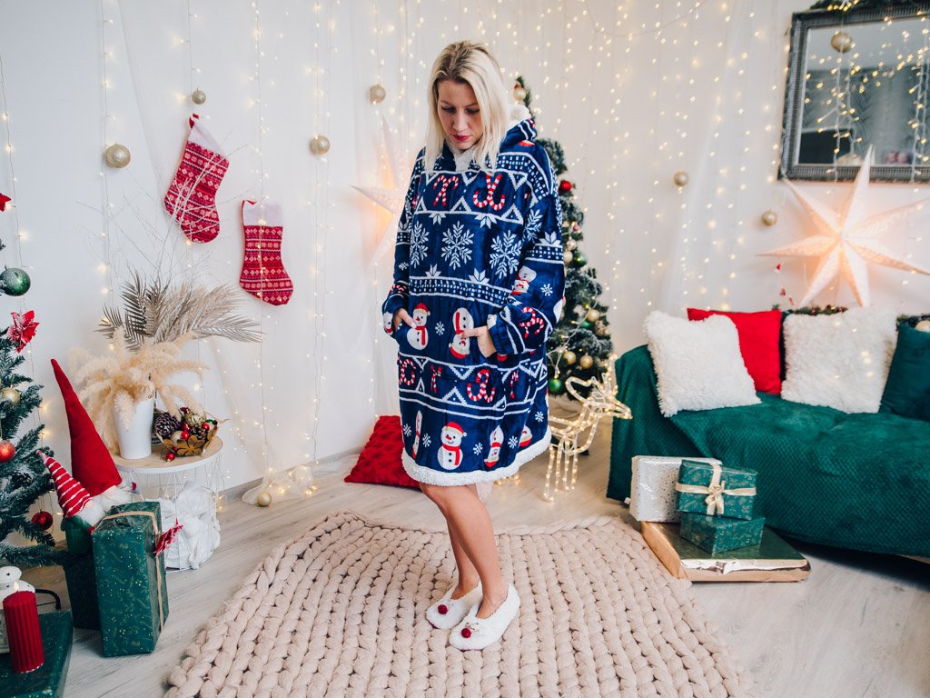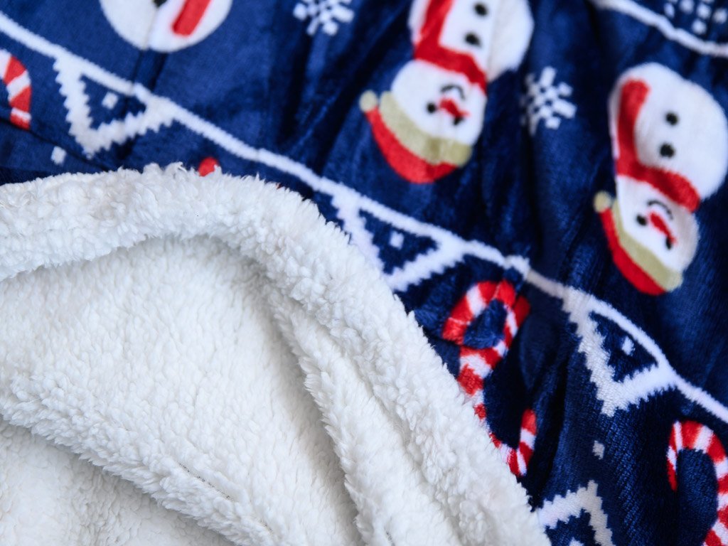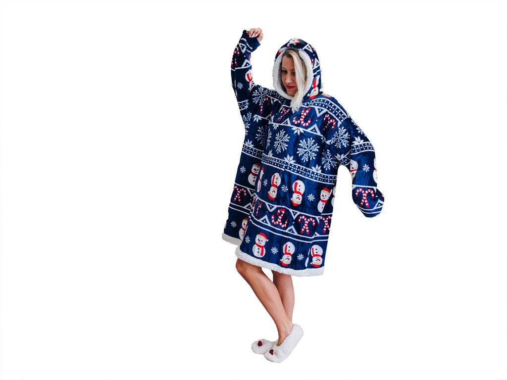 FROSTY kék báránybunda hatású kapucnis, ujjas pléd