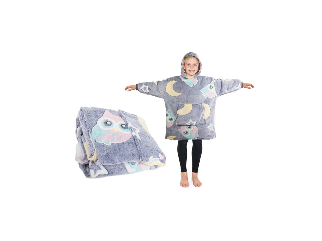 Gyermek világító kapucnis takaró ujjakkal SHINING OWL szürke