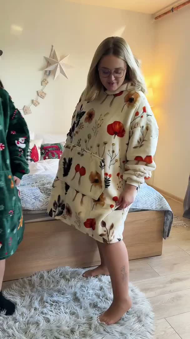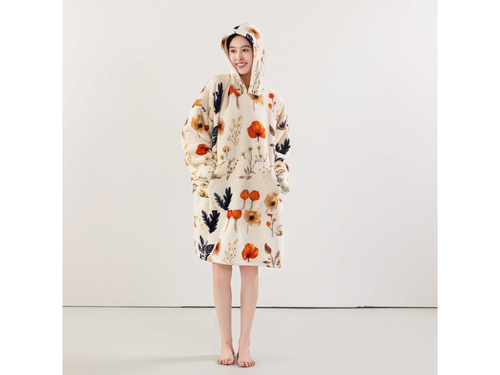 PAPAVA krém báránybunda hatású kapucnis, ujjas pléd