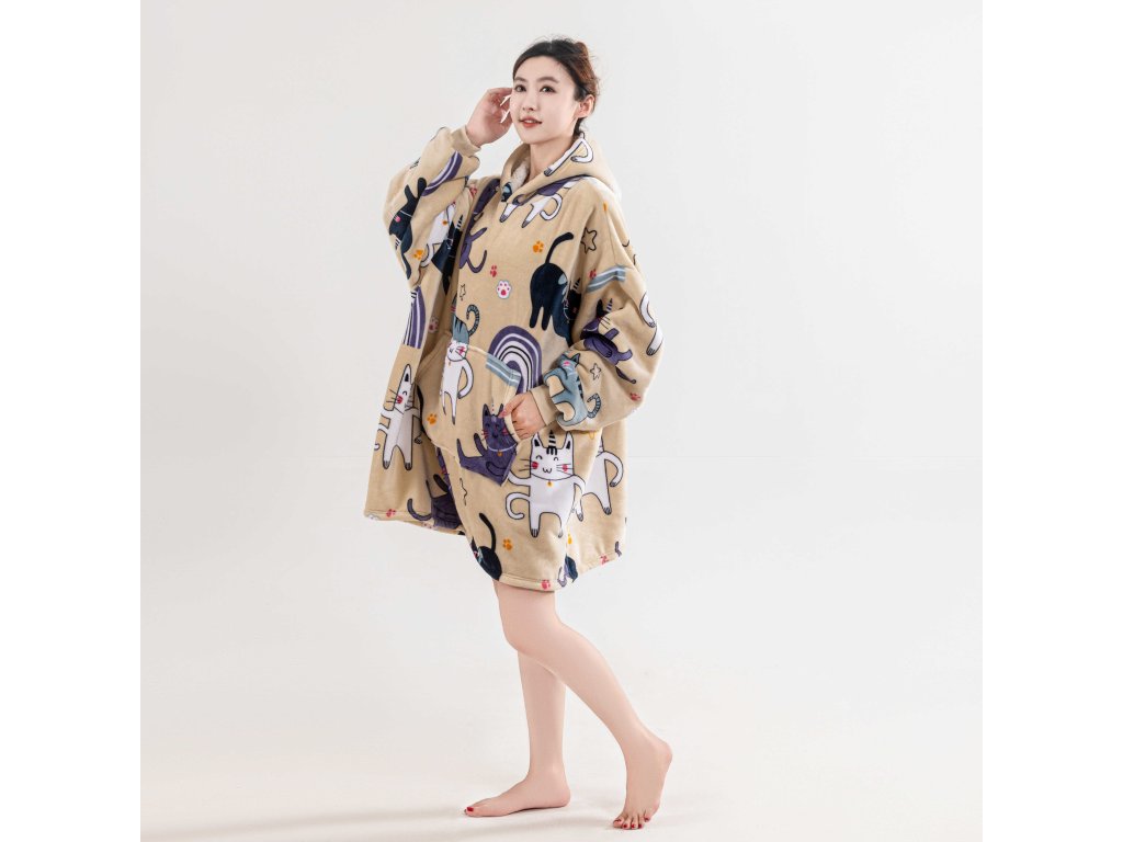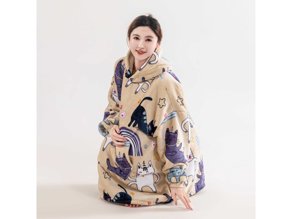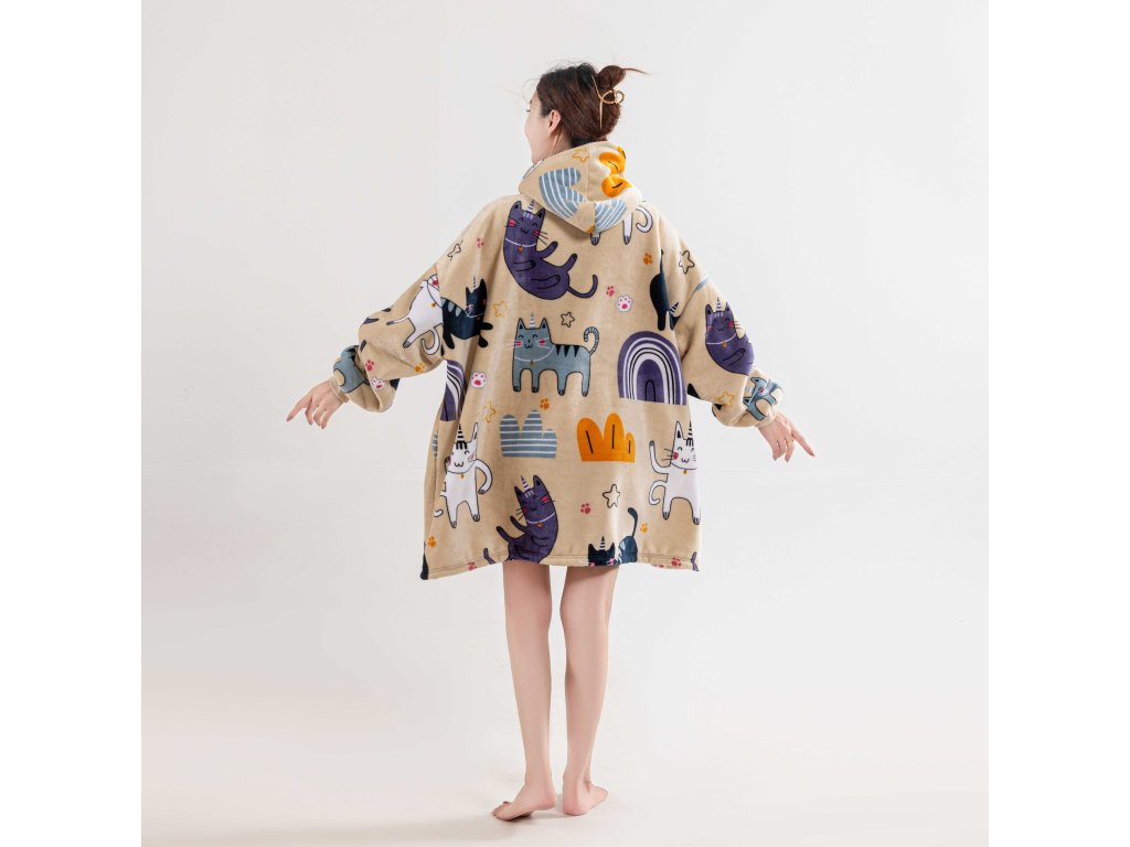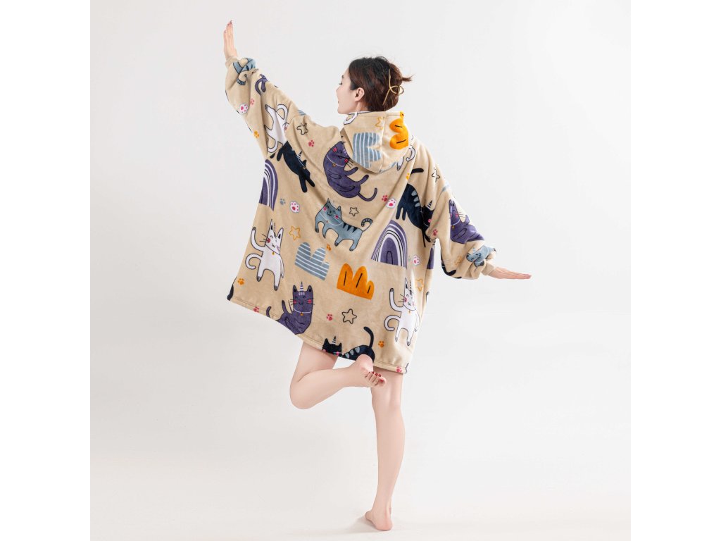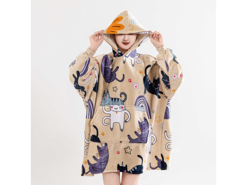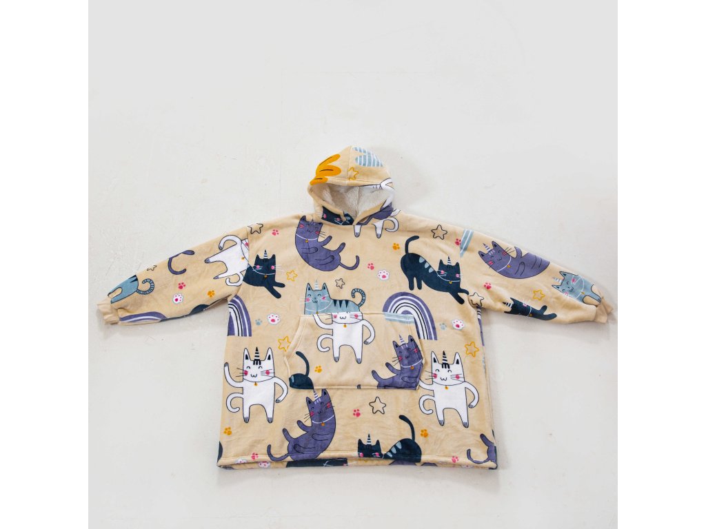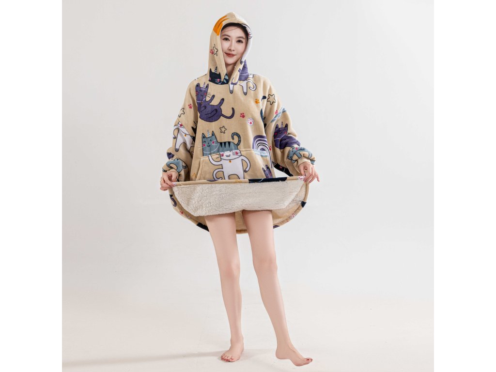 PURRSLEEP bézs báránybunda hatású kapucnis, ujjas pléd