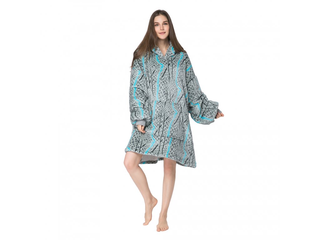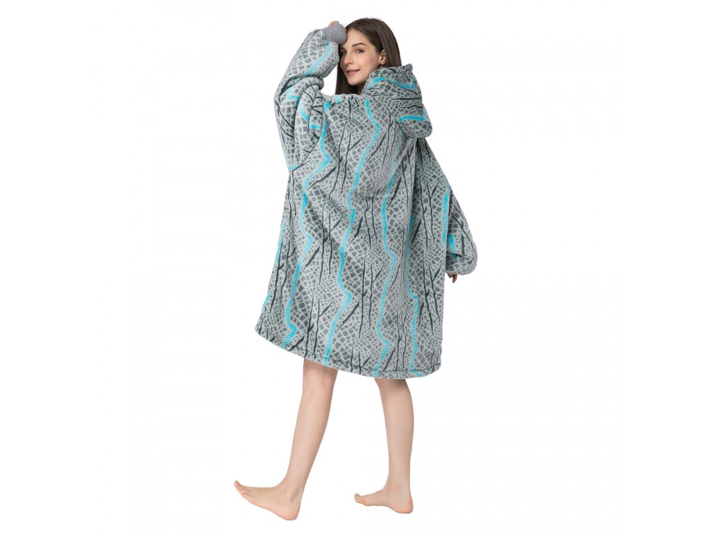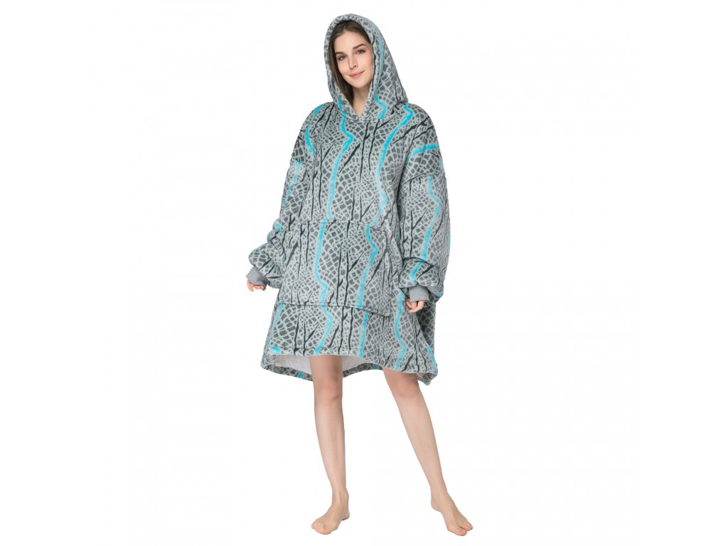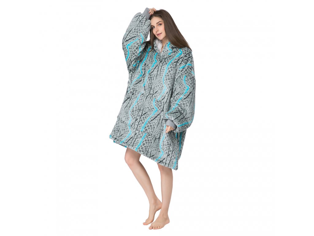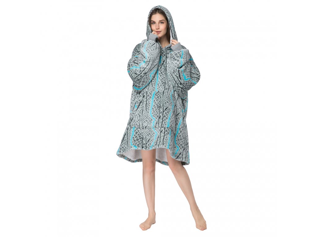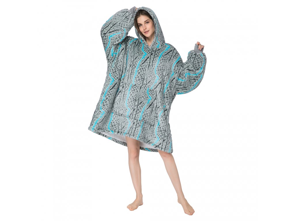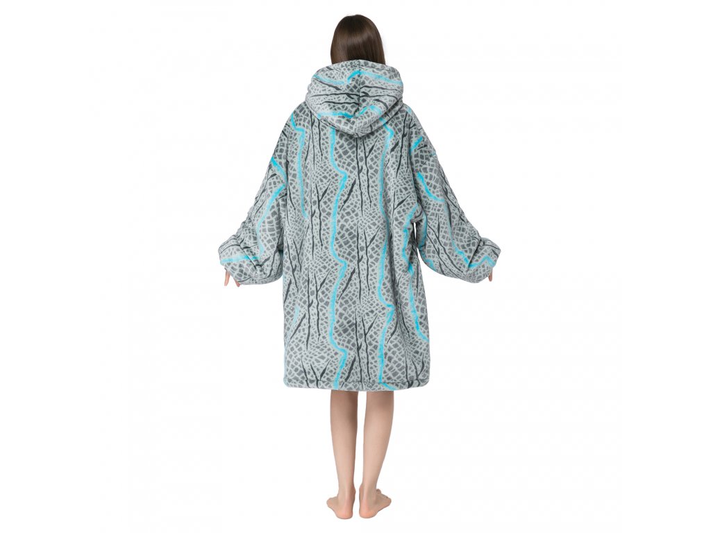 SERPENTINE szürke báránybunda hatású kapucnis, ujjas pléd