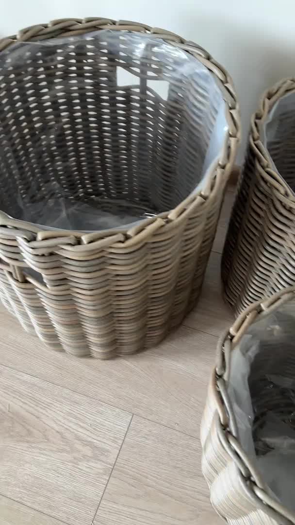ENS kör alakú rattan virágtartó szett műanyag betéttel, 3 darabos